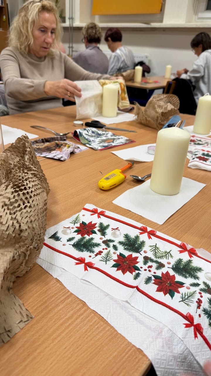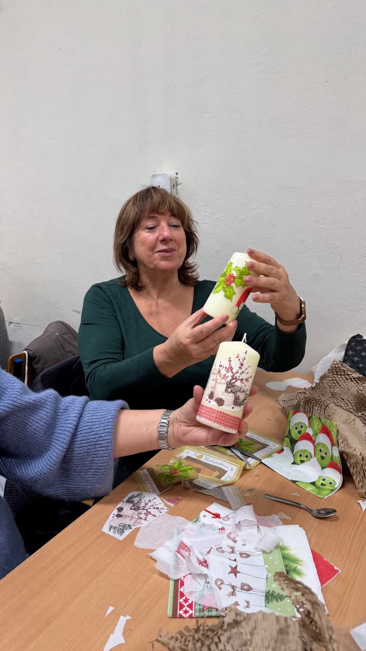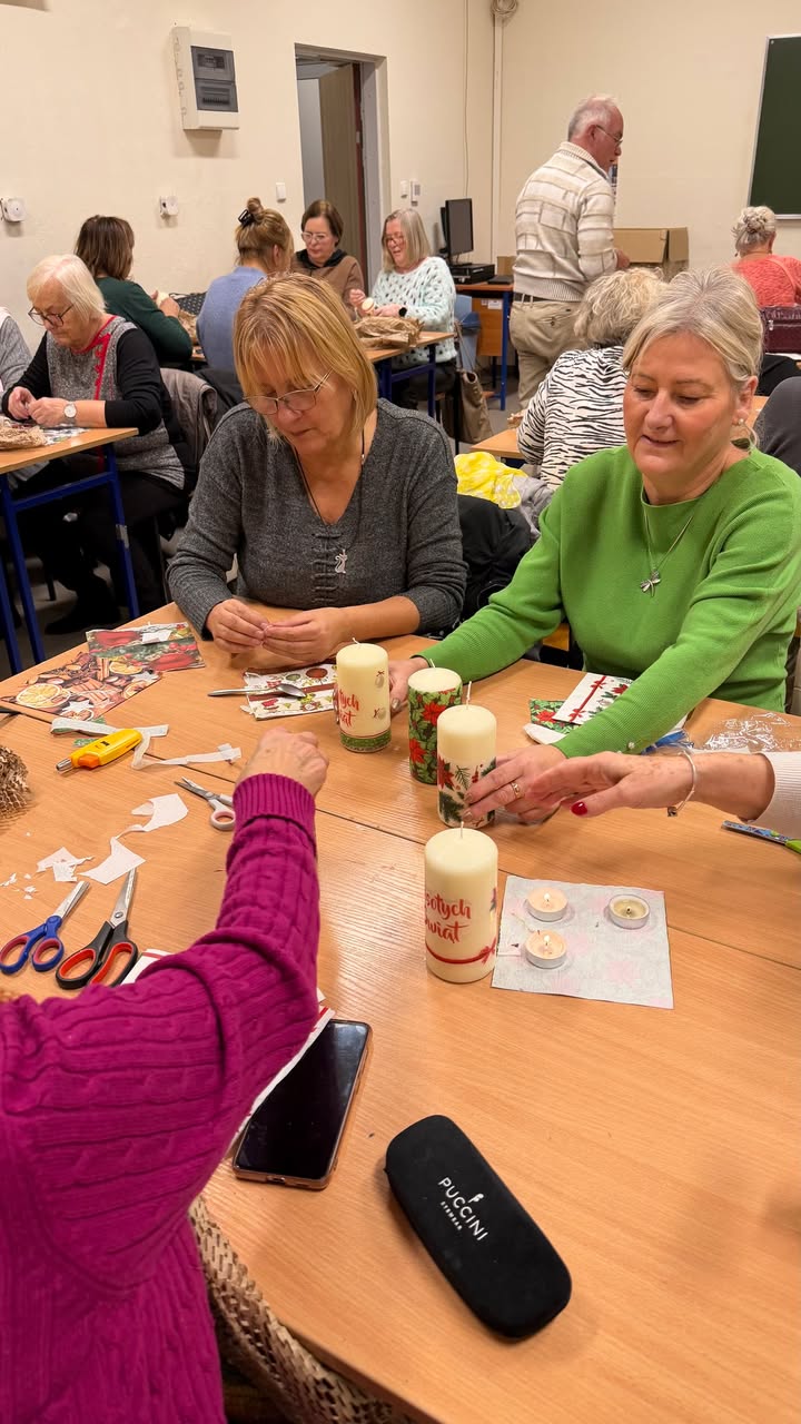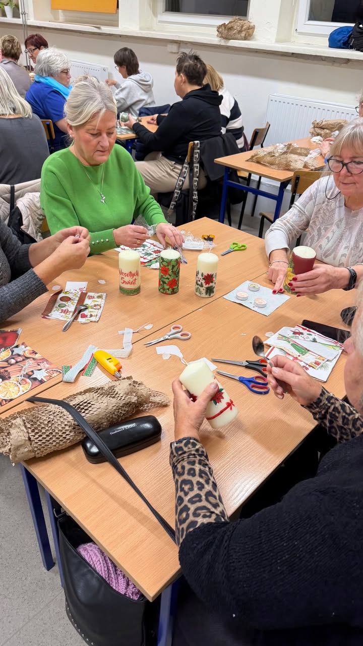 Część naszych słuchaczy uczestniczy w mobilności ponadnarodowej w VFBQ Bad Freienwalde e.V., a dla pozostałej grupy prowadzimy zajęcia artystyczne na miejscu! Dzisiaj ponad 50 seniorów uczestniczyło w warsztatach, na których stworzyli piękne świece świąteczne – efekty na zdjęciach.