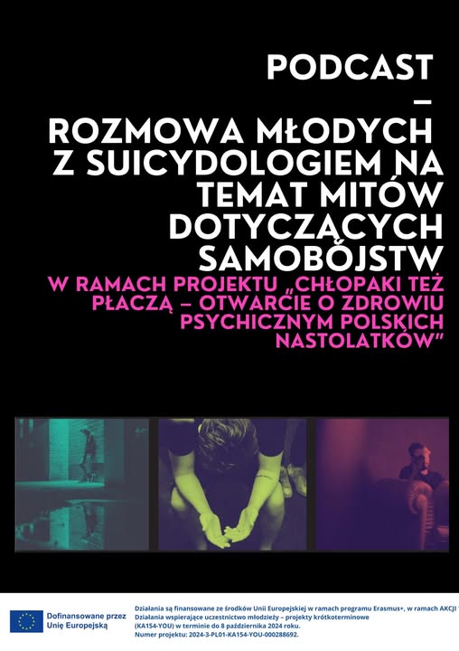 Kończymy jeden z ważniejszych projektów młodzieżowych – „Chłopaki też płaczą - otwarcie o zdrowiu psychicznym polskich nastolatków”. Przez ostatnie 12 miesięcy młodzież tworzyła naprawdę wartościowe materiały poruszając bardzo ważny temat depresji u młodych mężczyzn. Prezentujemy rozmowę młodych z dr suicydologii panią Anną Andrzejewską na temat mitów o samobójstwach.