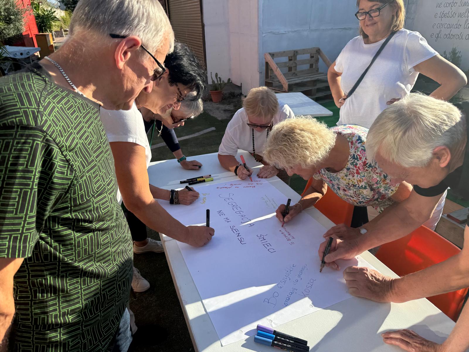 Dzień ósmy miał charakter planistyczny i refleksyjny – uczestnicy skupili się na tworzeniu i dopracowywaniu własnych inicjatyw lokalnych. Poranna rozgrzewka pomogła im zmapować miejsca, w których mogą realnie działać po powrocie – od bibliotek i klubów seniora, po szkoły czy targi. Mikrolekcja językowa w języku włoskim poświęcona była uprzejmym formułom zapraszania i proszenia o zgodę – elementom kluczowym w komunikacji międzykulturowej.