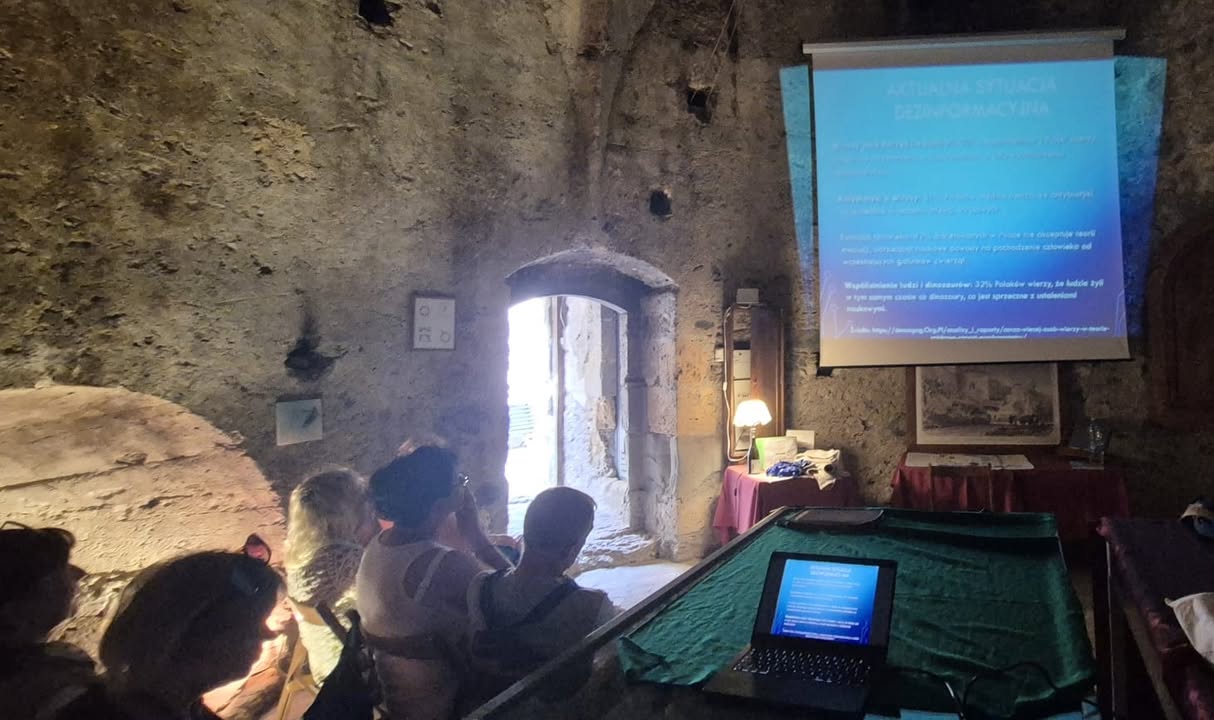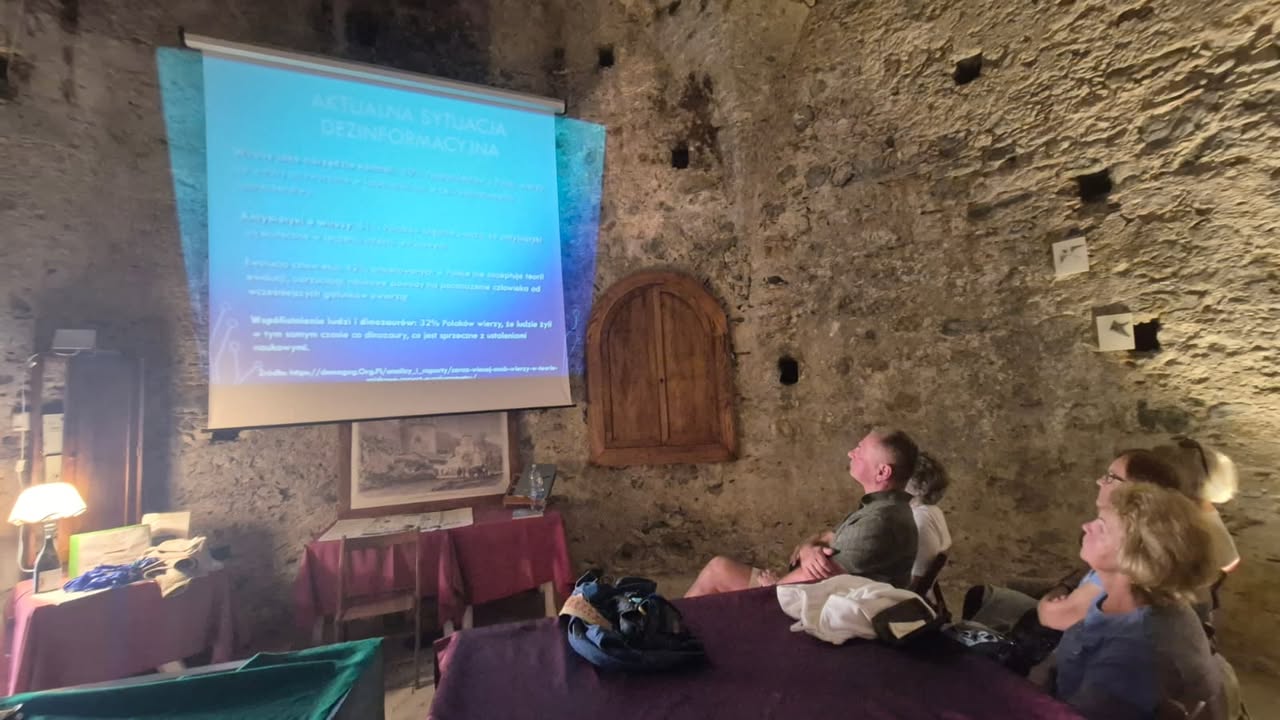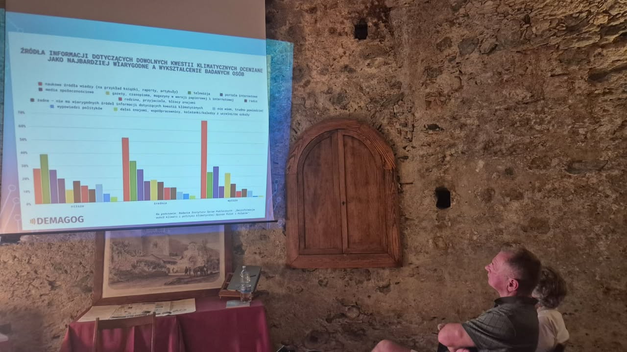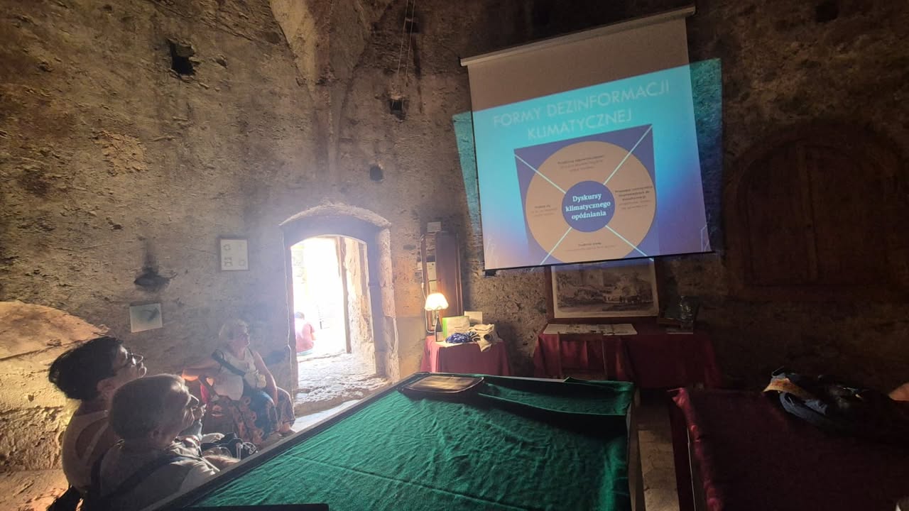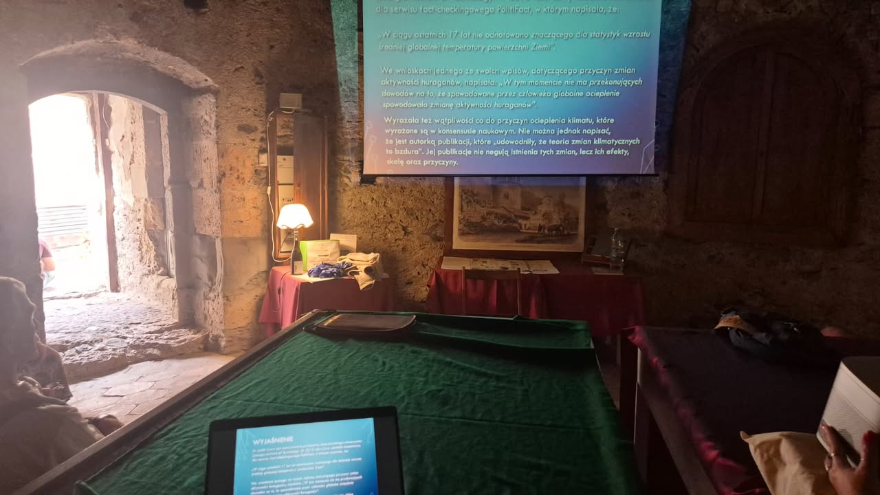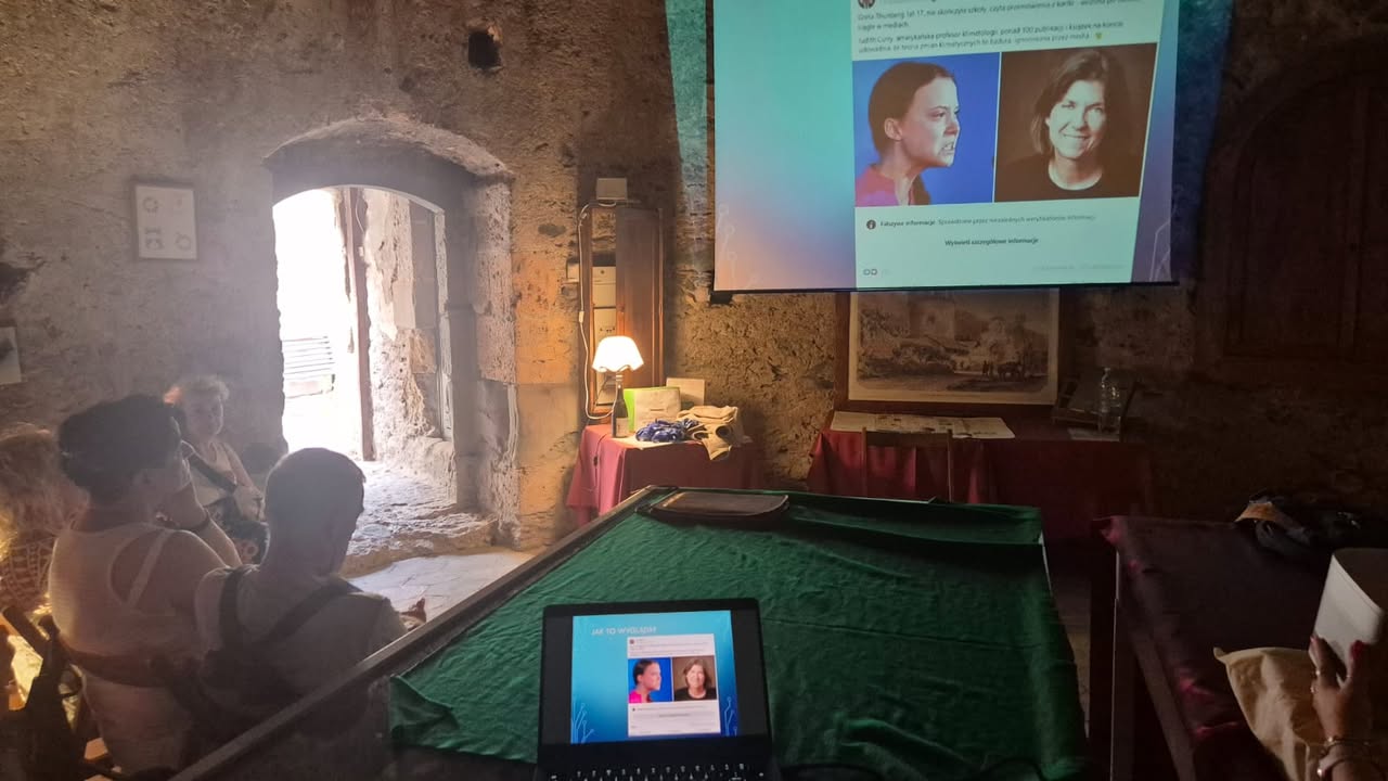 W południe przyszedł czas na podsumowanie merytoryczne – quiz „mit/fakt” pozwolił sprawdzić, jak wiele uczestnicy zapamiętali o ekologii i dezinformacji klimatycznej. W grupowej refleksji rozmawialiśmy o tym, które fake newsy były najtrudniejsze do obalenia i dlaczego. Uaktualniono też wspólną listę rzetelnych źródeł i lokalnych partnerów ekologicznych, z którymi można działać po powrocie.