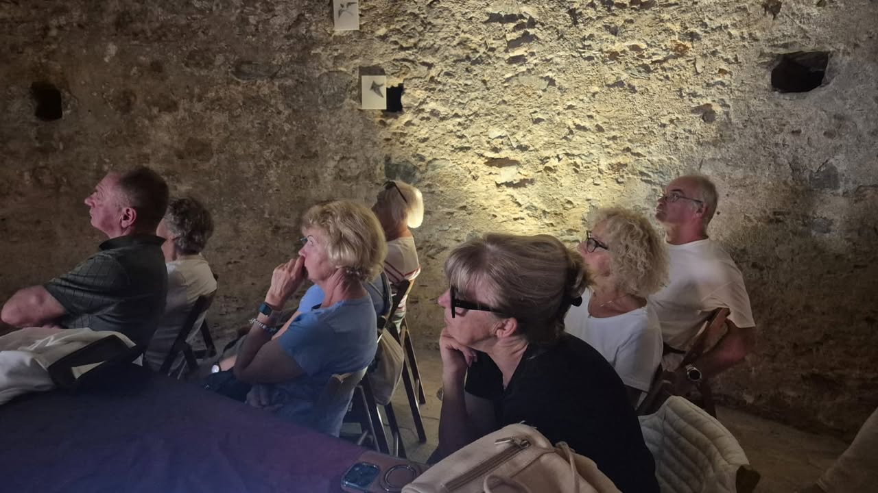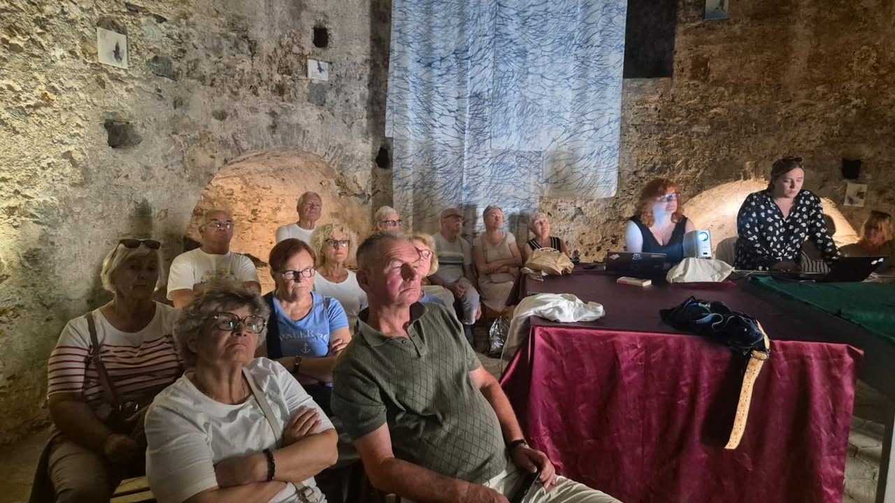 Kolejna część dnia była czasem na przegląd rezultatów ekologicznych. Seniorzy zaprezentowali efekty swojej pracy: koszulki ecosztuki, próbki ecoprintu, infografiki SDG, kampanię „mit vs. fakt” oraz zestaw materiałów edukacyjnych, które powstały w trakcie całej mobilności. Wspólnie uzupełnialiśmy planszę „Moje eko-inspiracje”, zapisując, co najbardziej ich poruszyło i co chcą przekazać dalej w swoich społecznościach lokalnych.